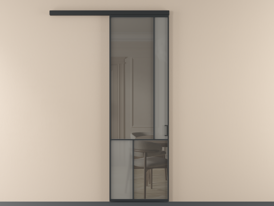 Во всех алюминиевых перегородках, независимо от типа установки, используется компланарный раздвижной механизм, благодаря которому декоративная крышка и полотно находятся в одной плоскости.