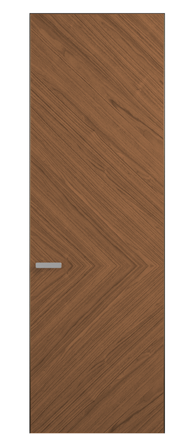 Полотно Rift в скрытом алюминиевом коробе становится полноценным элементом декора. В коллекции представлено 9 моделей дверей в высоте до 3 метров. Рисунок раскладки шпона варьируется от простого до сложного. «Рубашка» для каждого полотна подбирается вручную по цвету, текстуре и фактуре.
